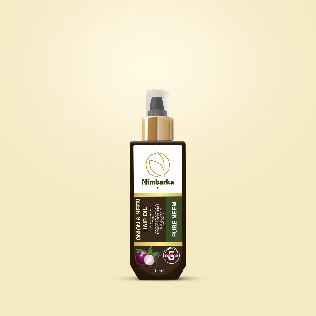 Apply Onion & Neem Hair Oil to scalp and hair length. Massage gently in circular motions and leave it on for 1–2 hours or overnight for deep nourishment.