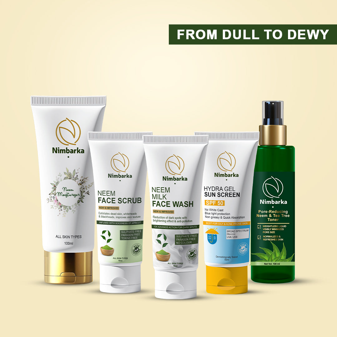 Glow Boost Kit by Nimbarka is an all in-one skincare solution crafted to cleanse, exfoliate, tone, hydrate, and protect your skin in five simple steps. Powered by the goodness of neem, tea tree, and nourishing actives, this kit helps combat acne, minimize enlarged pores, balance skin’s pH levels, and restore a healthy, radiant glow. Gentle yet effective, it’s perfect for daily use and suitable for all skin types—your complete routine for clear, soft, and glowing skin.