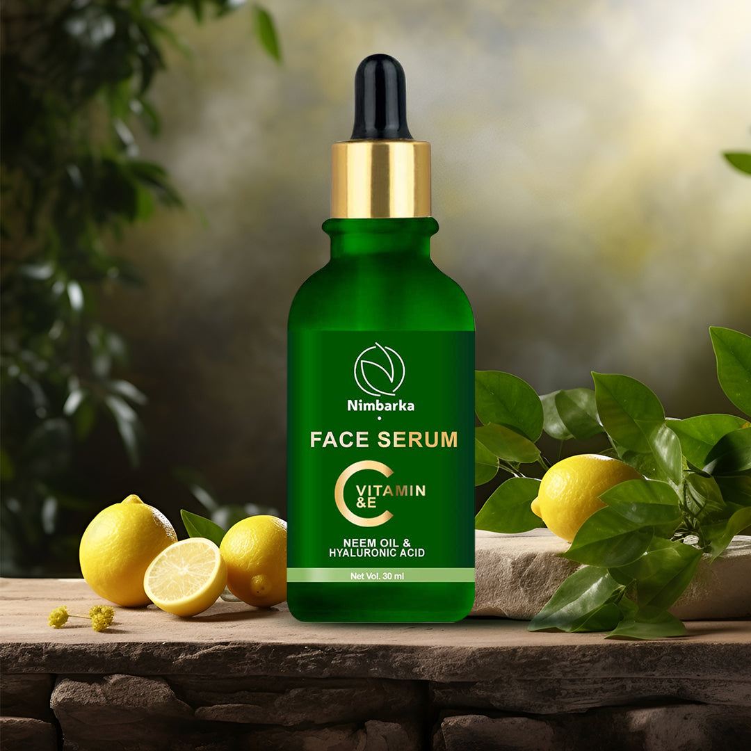 Nimbarka's Vitamin C&E Face Serum is a powerful brightening formula enriched with Vitamin C, Vitamin E, Neem oil, and Hyaluronic acid to target dullness, dark spots, and uneven skin tone. It helps boost collagen, repair damage, and deeply hydrate while protecting against environmental stress and premature ageing. Lightweight and non‑greasy, this serum absorbs quickly, leaving your skin radiant, smooth, and youthful. Suitable for all skin types and perfect for daily use.
